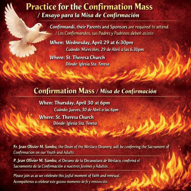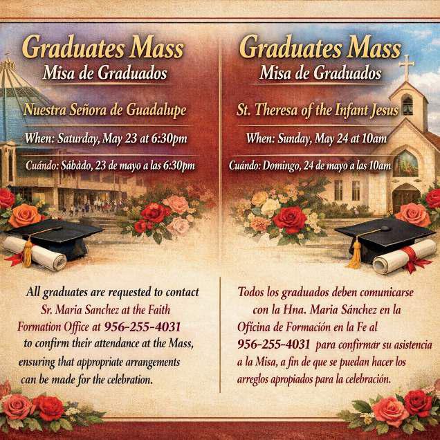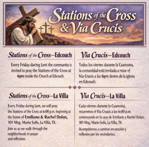 Todos los jóvenes adultos de 18 a 30 años están invitados a unirse a nuestro ministerio de jóvenes adultos. Nos reunimos el primer y tercer domingo del mes de 5pm a 7pm en el salón parroquial de Edcouch. Únase a nosotros para una noche de diversión e intercambio de fe.